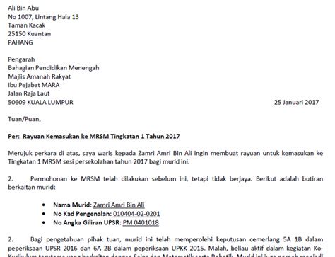 - Apa saja yang harus dicantumkan dalam surat rayuan MRSM?